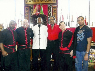 (from left) Sifu Sharif Bey, Sijung Pedro Cepero Yee, Soke Bob Martin, Sifu Chief Darius Two Bears Ross, Grandmaster Frank Yee (Head & Founder of Yee's Hung Ga), Jonathan C. Arrow Head Ross