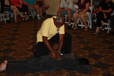 GM Martin about to demonstrate the healing power of Mimchi on two people with moderate to severe back problems.